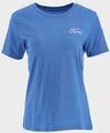 The Ford Trucks American Tradition Women's T-Shirt is a soft cotton-blend tee. The whole garment is blue, and on the left chest is the Ford script logo in crinkled white. On the back of the tee is a graphic in the same crinkled technique in white and navy. You will like the vintage flare of the 1949 Ford truck graphic depicting a little bit of history that has been a part of American tradition for over 100 years.